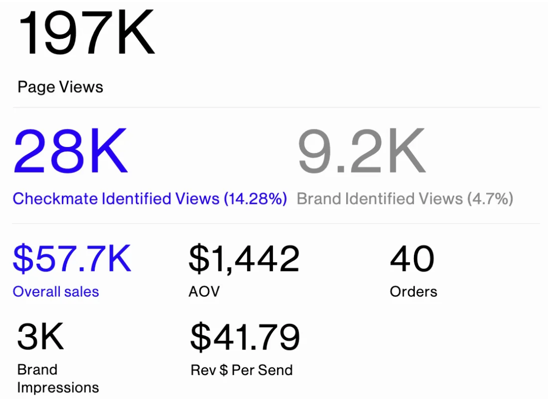 Checkmate x Luxury Jewelry Brand Case study for Checkmate x Luxury Jewelry Brand, ~90 days Checkmate used identity resolution & hyper-personalized marketing through email, SMS, Checkmate App, extension & desktop experience to drive incremental sales. Results