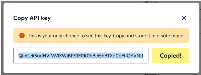 - Copy the API key presented and paste it into https://lockl.ink/ and share with a Checkmate representative