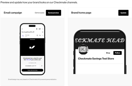 Check your Checkmate Targeting Dashboard to preview and customize your brand assets in our Checkmate channels.